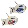 This hand-painted stoneware doorknob in off white, blue, yellow, red, brown and gold is crafted from stoneware with an iron fitting. Featuring assorted fish-shaped designs, supplied in packing units of 10 pieces per colour, it adds a delightful, quirky touch to cupboards and drawers, evoking gentle mediterranean waves.