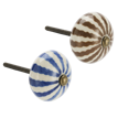 This hand-painted stoneware doorknob brings a playful touch to cupboards and drawers, crafted in India in assorted designs. Assorted designs. A packing unit is 10 pcs each colour, Pretty and quirky accessories for cupboards and drawers. Personalise your interior with your very own combination of door handles. Playful stripes evoke thoughts of summer parasols and beach balls in your home all year round. Each piece offers a small refresh for tired furniture, letting you mix colours and patterns for a relaxed, individual look. Subtle variation in brushstroke and glaze makes every knob feel quietly unique, while the rounded shape sits comfortably in the hand and turns daily routines into simple, tactile moments.Materials and hand-painted finish