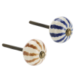 In India, these hand-painted stoneware doorknob pieces are crafted to bring quiet character to your home. As stylish and quirky accessories for cupboards and drawers, they let you personalise your interior with your very own combination of door handles. Each design features playful stripes that evoke thoughts of summer parasols and beach balls all year round in the home. With assorted designs, you can mix patterns and colours for a relaxed, informal look or repeat one style for calm simplicity. A packing unit is 10 pcs each colour, making it easy to plan larger projects or update several rooms at once.