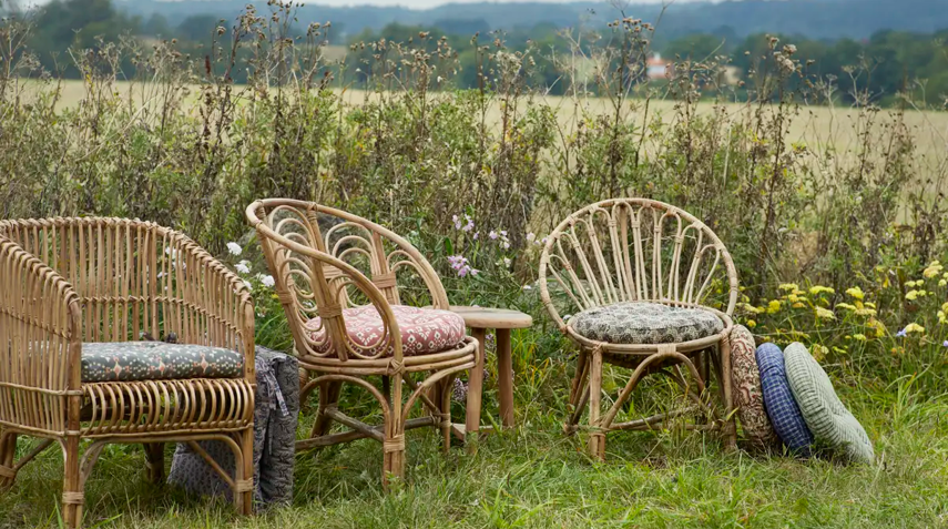 Many fine examples are handmade by skilled craftsmen in India. Rather than uniform, machine-made parts, every culm is selected, trimmed and joined by hand. The process shows in the finished chair: small variations in diameter, subtle differences in tone, the feel of a living material shaped with care.