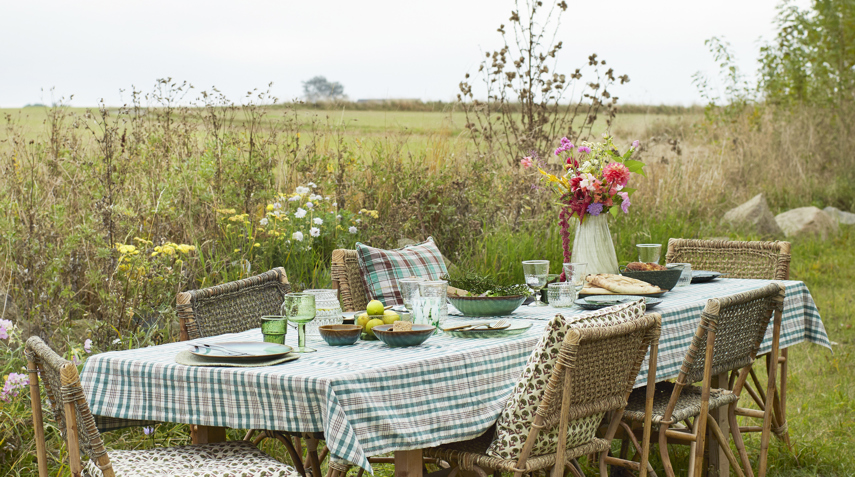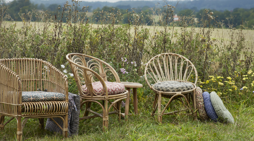 For each look, pair textiles and colours that help the chair’s natural warmth shine.