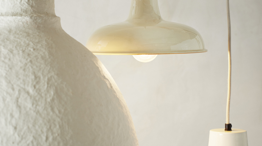 The 50s-inspired enamel ceiling lamp above uses a high-gloss lacquer over iron, with a precise lip and profile that reads tailored and sharp. Two E27 lamps deliver bright, even coverage. In monochrome kitchens, a glossy white or steel-toned shade signals order and clarity. In studios and dining rooms, deeper colours add energy and rhythm.