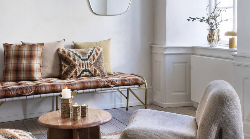 A recycled wooden coffee table acts like an anchor. It brings warmth to minimal rooms and calm to eclectic ones, and it pairs beautifully with natural fibres and plant life. Keep the palette earthy and the textures layered, and the space will feel complete.