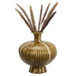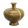 From skilled artisans in China, this stoneware vase brings quiet character to your home. A beautiful statement vase, it is just as attractive without flowers as with, inviting you to enjoy its sculptural presence on a shelf, console, or dining table. The ribbed surface subtly evokes the seabed, catching light and shadow across its deep ochre tones. With an antique look inspired by coastal finds, it elegantly balances a large round body on a narrow base, giving a grounded yet graceful mood to any room.