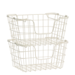 Discover this stackable iron wire basket in soft cream, crafted from sturdy iron with hand-welded iron wire for lasting durability. Designed to be stacked for a neat, space-saving solution, it comes in two sizes and three colours, perfect for organising everyday items in wardrobes, base cabinets, broom cupboards and similar spaces.