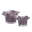 Our glass votives in purple are crafted from tinted, solid-coloured glass with a ruffled edge. This set of 2 includes two sizes that can be used as votive holders for small candles or as plant pot covers for smaller plants. Mix and match colours and sizes to suit your mood.