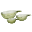 Bring playful charm to the table with these glass pineapple bowls, crafted from coloured glass with transparency and a detailed design. This set of 3 in fresh green is perfect to use for serving snacks, desserts, or sides, offering a cool and kitsch touch to everyday dining.