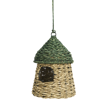 This hanging bird house in natural, green seagrass adds soft colours and familiar shapes to your garden or home. Handwoven seagrass on an iron frame offers craftsmanship quality and sustainable character, while providing small wild birds with food or a safe nesting place, made by a fairtrade-certified producer supporting women’s empowerment.