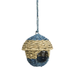 Our hanging bird house is handwoven seagrass on an iron frame, crafted to a high standard for everyday use. Seagrass is a sustainable natural material that does not harm the planet, while the iron provides a sturdy base that keeps its recognisable form. Produced by a Fairtrade-certified manufacturer (WFTO), each piece is woven by women in villages as part of a women’s empowerment project. This business with a difference supports fair income and skills development. Natural seagrass fibres and durable iron combine with the gentle natural, blue colour palette to give this hanging bird house a calm, honest character that sits well in both gardens and interiors.