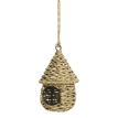 This hanging bird house is handwoven from natural seagrass on a sturdy iron frame, crafted to a high standard with soft colours from nature and recognisable shapes. Functional and decorative, it decorates your garden, offers small wild birds food or nesting space, and can also be used as indoor decoration.