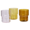 Each coloured drinking glass is made from durable, tinted glass using a straightforward pressing technique that keeps every piece sturdy and consistent. Colour runs through the material rather than sitting on the surface, so pink, amber and yellow tones stay bright through regular washing and everyday handling. The shape is simple to hold, with a balanced weight that feels steady in the hand yet light enough for children or guests to use comfortably.Care and maintenance