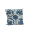 In our Suzani embroidered cushion cover, fine embroidery is stitched onto soft cotton for a relaxed yet refined feel. The name Suzani is Persian for “needle”. Colourful patterns that often have symbolic meanings related to happiness, health, and fertility. Here, carefully placed motifs and the blue, off white palette give a subtle story to your décor. Traditional suzani techniques are reimagined with printed cotton and precise hand-guided embroidery, creating an object that feels both crafted and contemporary, ideal for layered, characterful homes.