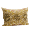 Discover tactile luxury with this suzani embroidered cushion cover in warm mustard, khaki, sandstone and beige on printed cotton, where embroidery creates rich layers of colour and pattern. Inspired by the persian art of suzani, symbolising happiness, health and fertility, it pairs with a matching mattress for eclectic interiors where tradition meets modernity and a global vibe.