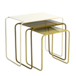 Our nested iron tables are crafted as powder-coated iron tables. This gives a smooth, durable finish that suits everyday use. Each piece is made from sturdy iron, shaped with clean lines and finished in a trio of cream, tapenade and lemonade tones for a calm, balanced mood. The slim frames slide neatly beneath one another, so this nested iron tables set tucks away when not needed yet is always ready to serve coffee, display candles or anchor a reading corner.Care and maintenance