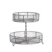 This practical two tier stand is crafted from steel with twisted iron wire, hand-wound for a subtly rustic look. Use this iron wire etagere to display baked goods or drinks in restaurants, cafés and shops, or for neat storage of fruit, vegetables and other food items at home.