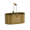 This Oval iron utensil holder keeps everyday tools close to hand as you move around your home. Made in India, it offers portable storage and organisation. Suitable for small garden tools, a cleaning kit or anything else it’s handy to carry around the home, it sits comfortably on a worktop or windowsill when not in use. The soft tapenade tone brings a calm, grounded mood that pairs well with both light and dark interiors. A simple oval shape and sturdy handle make it easy to lift, carry and set down, whether you are watering plants, tidying a hallway or refreshing the bathroom. Subtle divisions inside help keep essentials together without feeling fussy.Powder-coated iron construction