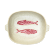 This stoneware oven dish in off white, red is a small dish ideal for both cooking and serving. Crafted from robust stoneware, it offers long-lasting durability and a decorative motif that matches the plates in the series, underscoring the collection’s inspiration from the sea and its organisms. Colour intensity and shade may vary.