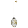 This glass easter egg w/ flowers is crafted in India to bring a quiet, natural mood to your home. Decorate for the festive season with the glass egg, which, with its dried and pressed flower heads, decoratively brings nature indoors. It can be hung in a window, on the delicate spring branches in a vase, or anywhere else you would like to adorn your home. The clear, natural white tones and subtle gold detail make it easy to mix with your existing decorations, from easter displays to all-year arrangements.partially recycled glass with natural variation