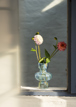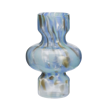 Our dotted glass vase is crafted from glass and partially recycled glass. Due to the handmade hot-glass process, the decorative coloured spots will vary slightly from item to item, giving every vase its own quiet personality. Blue, aqua, taupe and clear shades scatter gently across the surface, creating soft reflections in natural light. This dotted glass vase works with a single stem or a relaxed bouquet, and looks just as inviting empty as when filled with flowers.Care and maintenance