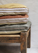 This Cotton mattress brings calm, grounded colour to any space with its warm rust and neutral sand palette. Double-sided mattress in warm rust and neutral sand. The striped contrast piping separates the two sides and evokes traditional Danish folk textiles. Sized to fit several pieces in the collection, but can also be used directly on the floor or terrace. Removable polyester filling. Crafted in India, it offers a relaxed, informal place to sit or lie down, whether layered on furniture or styled as a standalone piece.Made from durable, fully dyed cotton that has been treated to resist fading and colour run during washing, it features a concealed zip for easy removal