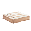 Bring relaxed warmth into your home with this striped cotton sitting pad, thoughtfully crafted in India. Inspired by striped design inspired by traditional Danish textiles, with their recognisable folk stripes in varying widths and colours, it adds quiet character to any corner. Create a cosy spot directly on the floor or on the terrace. Filled with shredded cotton fabric offcuts for a sustainable choice, it offers gentle support while making good use of leftover materials. Subtle bands of old rose, white, light blue and grey create a calm, informal mood that suits both modern and classic spaces.Cotton and cotton filling
