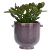In this stoneware flower pot, the clay body is fired and then finished with a smooth glaze. Due to the glazing process, colour intensity may vary from piece to piece, giving every pot a small individual character. The finish combines purple, off white shades that look good with many leaf shapes and textures. Durable stoneware makes this stoneware flower pot suitable for everyday use, yet still calm and refined in appearance.Care and maintenance