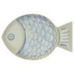 Bring coastal charm to your table with this stoneware fish tray in soft light blue, sand tones. Crafted from durable stoneware, it features a detailed fish silhouette that stands out as a large platter, perfect for serving shared dishes or displayed alone as an eye-catching decorative piece.