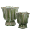 In our stoneware flower pot, durable stoneware is shaped with a subtly irregular silhouette that hints at handcraft. Due to the glazing process, colour intensity may vary from piece to piece, giving every pot its own balance of green, beige and white. These slight shifts make each stoneware flower pot feel individual and quietly alive in your home. Placed alone or in a small group, it works equally well with leafy plants, herbs or simple bare branches throughout the home.Care and maintenance