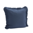 This ruffle cushion cover in dark blue brings a calm, flowing mood to sofa or bed. Ruffled like life. Soft curves, gentle waves. Plain cushion cover with a subtle woven stripe texture, it feels simple yet considered. An elegant frilled edge gives a lively, soft and full look that feels inviting to lean against. Mix harmoniously with other colours and patterns for a personal expression that shifts with the seasons. The cushion’s style suits both sofa and bed, adding a classic touch that blends beautifully with current trends. Crafted with care in India, this ruffle cushion cover is designed for everyday comfort and quiet character.Durable cotton with concealed zip and varied colours