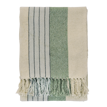 Soft and sustainable, this recycled cotton throw in off white, green, light grey and black is handwoven from 75% recycled cotton and 25% cotton, partly sourced from discarded garments in a resource-efficient production. Ideal to warm yourself, its soft texture, calm hues and classic fringes create a warm, harmonious atmosphere.