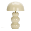This enamel table lamp in light beige features a hand-enamelled iron body with an e27/5w fitting, a 2.35 m wire with switch and round, earthed 2 pin plug. Its spherical, soft shapes and glossy surface provide sculptural charm and tailored, soft light, making it ideal for diverse interiors.