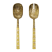 This wooden salad set w/ bamboo, in natural, yellow, is crafted from mango wood and bamboo to showcase authentic materials and hand-carved character. Each set of 2 spoons is ideal for aesthetic serving, blending timeless design with unique grain patterns and knots, meaning no two pieces ever look quite the same.