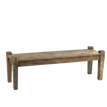 This recycled wooden bench brings quiet character into everyday spaces, with beautiful, varied pieces of wood combined to create a completely unique surface. No two benches are the same. Each one is a bench inspired by original Indian furniture, with subtle marks of age that tell its story from India to your home. Place it as a beautiful seat in the hallway, at the foot of the bed in the bedroom, a resting place in the kitchen, or wherever it happens to fit. The calm natural tones and simple lines make it easy to pair with soft textiles, baskets or favourite books.Crafted from reclaimed building materials, old commercial vehicles and ship-breaking yards