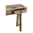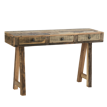 Designed as a versatile piece, this recycled wooden console table brings quiet character to any room. With 3 drawers, it offers practical storage for keys, notebooks or chargers. Small table with three drawers that can either hide things away or keep everyday items easily accessible. Ideal both as a small desk or as a decorative console in the living room or hallway. Beautifully varied pieces of wood are combined to create a completely unique surface. No two tables are the same. Subtle marks of its origin and journey from India give this compact console a calm, lived-in feel that sits easily beside existing furniture in your home.Crafted from reclaimed building materials and ship-breaking yards