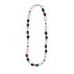 This beaded necklace combines glass beads, mother-of-pearl and deep colours in varying sizes, threaded on nylon string in pearl, green, red and blue. A handmade glass-bead design with a practical, secure metal clasp, it suits everyday wear as well as special occasions. Made with Madam Stoltz and Nai Disha, this multicoloured piece is a conscious, socially responsible choice.