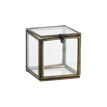 Crafted from glass and iron, this Glass box is assembled by hand using time-honoured soldering techniques. Glass boxes from India feature glass and iron with a clear and aged brass finish, giving each piece a softly worn character. Transparent glass, aged glass accents and slim iron edges create a light, understated look that suits both modern and vintage interiors. The simple materials, Glass, iron, and carefully aged brass tones express Madam Stoltz’s quiet commitment to honest design and long-lasting objects.Care and maintenance