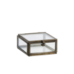 Small square glass box for the very smallest storage. Its antique look perfectly showcases craftsmanship and is ideal for organising and storing jewellery or cherished items, reflecting Madam Stoltz’s values of simplicity and authenticity. Made in India, this Glass box sits neatly on a dressing table or shelf, keeping treasured keepsakes visible yet safely contained, and bringing a calm, understated mood to everyday rituals.Materials and craft: glass and iron with a clear and aged brass finish