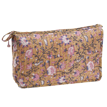 Our quilted cotton washbag is inspired by original Indian block prints and made from durable cotton with soft polyester padding for gentle structure. Each piece is printed and stitched with care, giving subtle variation and a handcrafted look. Features a handmade tassel crafted by artisans from Nai Disha’s Empowerment Programme, adding a small but meaningful detail. Close to our hearts, this collaboration reflects a 16 year partnership with Nai Disha, a Delhi-based NGO supporting women and children through education and craftsmanship. Together, we have created some of the small, meaningful details that define the Madam Stoltz identity, expressed here in the peach, pink, white and blue floral surface, cotton shell and supportive polyester padding.Care and maintenance